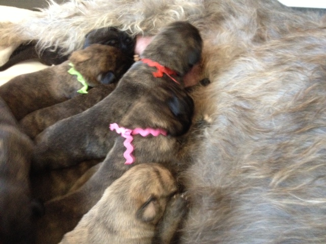 THANK YOU FOR YOUR INTEREST IN BAILEBRAE IRISH WOLFHOUNDS. We are not currently blessed with puppies; our focus for the last couple of years has been in getting our potential breeding stock to their Championships. We are, however, looking forward to doing a breeding in the fall. (Depending, of course, on timing of heat cycles.) With 2 months of gestation and ten weeks of their initial raising and care, those puppies we are not keeping would be ready for homes sometime in winter 25/26. If you are interest in a future puppy, let us know and we will add you to our "pool" of potential homes. We don't keep a list per se, because it infers a next-in-line mindset, and not all homes are suitable to all puppies. We work hard to make sure the puppy is a good match to the prospective owners. If we do have a litter we will let you know, and if you are still interested we will ask you to fill out an application to help us make that match. Thank you again!